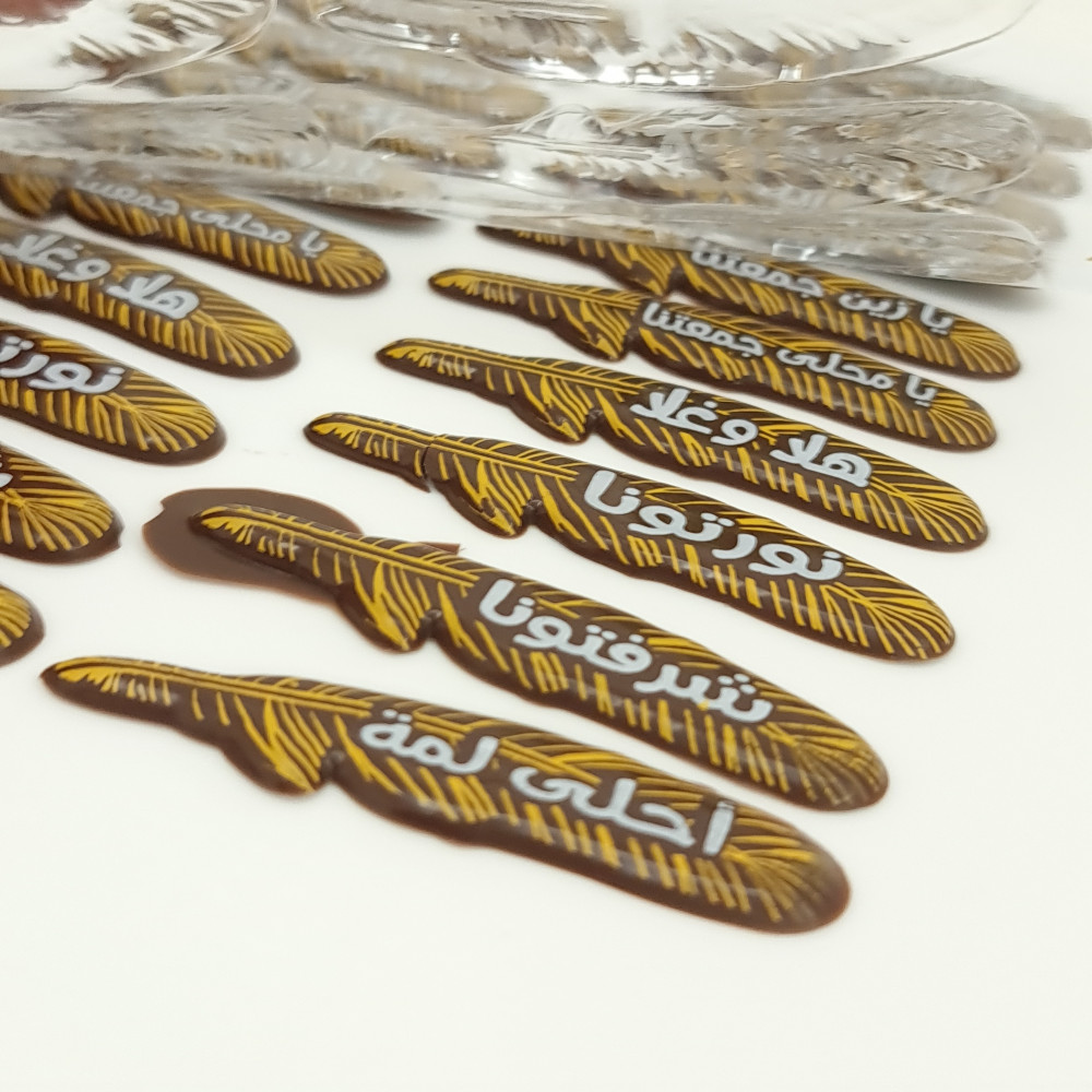 قالب واحد ترانسفير جاهز شكل ريشة بعبارات ترحيبيه .
